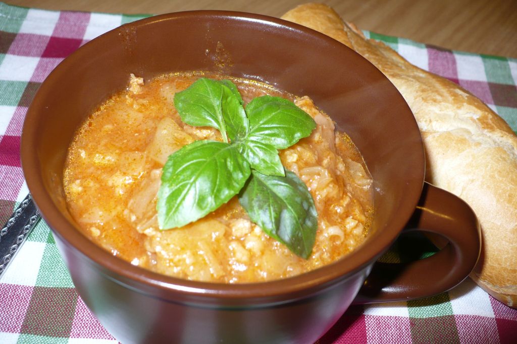 Tym razem znów propozycja jednogarnkowego obiadu. Zupka jest pyszna, a dla uspokojenia wszystkich hodowców dodam, że żaden gołąb przy jej przyrządzaniu nie ucierpiał 🙂